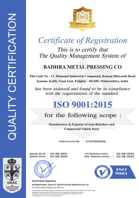 BADHRA METAL PRESSING CO. established in 1980 and is a pioneer in manufacturing quality sheet metal body parts of the commercial vehicles and three wheelers. Since its inception we have attracted many domestic and international buyers of auto mobile parts and consider them as our partner. Our motto is to promote better business relations by providing our customers with the best quality, competitive rates and assure them our co-operation.